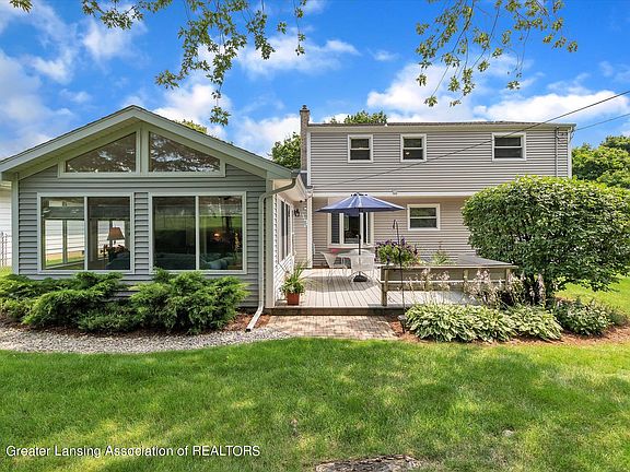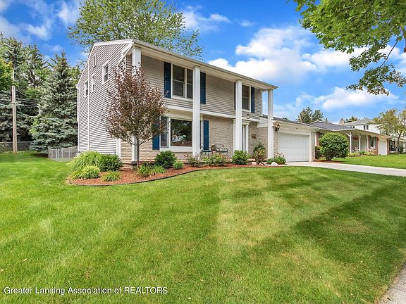 What a nice feeling walking up the newer concrete drive and walk to the front door! Foyer opens onto the living room with wood floors underneath the carpet but exposed in dining room and kitchen. Fresh paint for an airy feel. Newer Anderson window in living room and vinyl replacements throughout. 4 bedrooms up and 2 full baths. Gorgeous sunroom added in 2003 with door to the maintenance free deck. Yard is almost completely fenced. Newer stainless steel kitchen appliances, pretty bay windowoverlooking the deck in the eat-in breakfast nook. New A/C this summer plus radon mitigation system. Washer and dryer in basement stay along with the work bench. Panelled rec room with new carpeting. Hot water heater new 2018. Many, many things to love about this property! Sidewalks, close to Frandor and Eastwood shopping centers, highways, Post Oak International Baccalureate K-7 elem. school, Tollgate pond and walking paths. Easy drive into downtown Lansing or Mich State University!