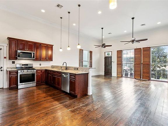 Beautiful 3Br/2Ba home with large relaxing park like backyard. This Historic home sits in the Marigny/Treme/Bywater area and has the perfect combination of historical features and contemporary upgrades. Here, you'll find working wood shutters, high ceilings, real hardwood floors plus an open kitchen/living room floor plan with SS appliances, granite counter tops, ceiling fans and more. The backyard has a park like feel with the deck/patio just off of the primary bedroom, a large area for guests to enjoy, a brick path, and plenty of greenery. Parking is easy with the gated driveway with space to park one or two cars. Walking distance to the French Quarter!