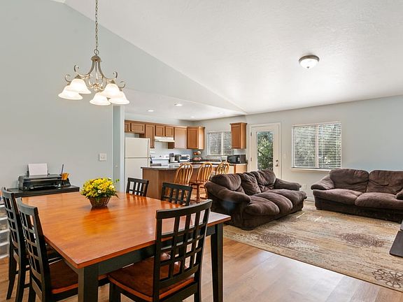 One story rambler with a great back yard and a wonderful neighborhood. Great, open floor plan. Recently painted interior, vinyl wood flooring. Large back patio. Yard is fenced with 6-feet privacy fencing. Two-car garage with extra shop area, or could be finished for office or salon. Easy access to Pioneer Crossing/I-15. Easy to show. 2 private parks nearby with kid play area, basketball hoops, pickleball and tennis courts nearby.