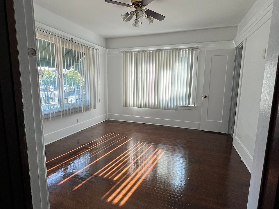 This Beautiful Single Family Craftman home feature 3 bedrooms and 2 baths. There are ceiling fans in the master bedroom and second bedroom. The dinning and living room also have a ceiling fan. Kitchen has a sunroom with appliances and also has great amount of storages. The hardwood floor is just refinished and polished and newly painted. Dinning room and living room is open floor. Privatly gated with 2 parking spaces in the front of the house and two on the side of the house. It is very easy access to 110, 405 and the 10 freeway and shopping center. Public transportation is also easily accessible, bus stop is just around the corner. It is very quite neighborhood. Washer and Dryer inside the house. Security and First rent is due on signing. Renter is responsible for gas, trash, water and all utilities. Require to have renter insurance.