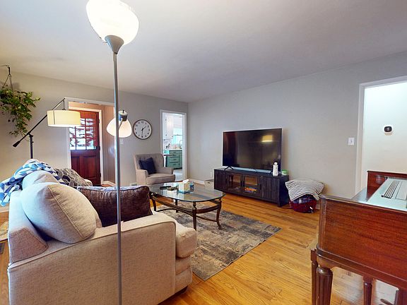Laundry roomQuaint patio areaHardwood flooringStainless steel appliancesUpdated window treatmentsRemodeled bathroom