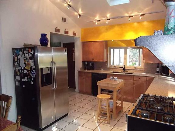 Not your average cookie cutter house! This 3 bedroom 2 bath house has been updated with double pane windows and gas instant hot water for lower energy bills. Kitchen features a cooks dream high end 6 burner gas range with matching hood, Stone surfaces, solid wood cabinets and vaulted ceilings. Attached dining room has leaded glass french doors that lead to a shaded deck overlooking an huge backyard. Bathrooms have recently been updated with travertine and spa tub. Circular driveway with plenty of parking on the side of the property. No deed restrictions, great access to I 4 and Brandon.