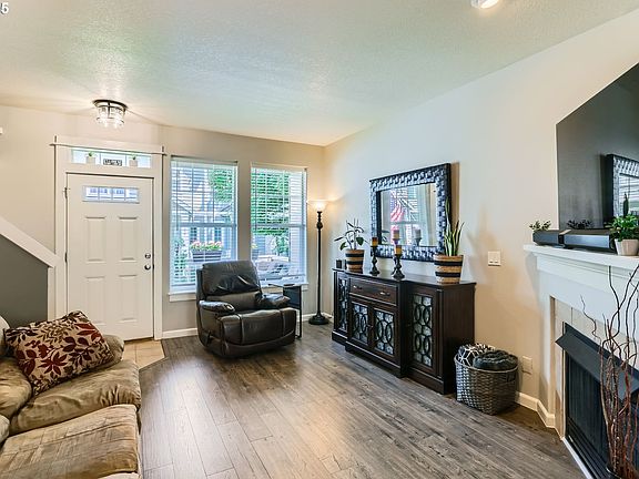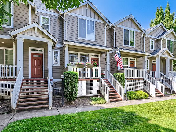 Welcome to this beautifully maintained 2-bedroom, 2.5-bath townhome in a quiet, well-kept community in the heart of Beaverton. Offering an ideal blend of comfort and convenience, this home features an open-concept main level with 9-foot ceilings and vaulted ceilings in both upstairs bedrooms. Each bedroom has its own dedicated ensuite bath, complete with updated fixtures, new elongated high-efficiency toilets, and stylish finishes. Recent updates include luxury vinyl plank flooring on the main level and in all bathrooms. New carpet on the stairs and in both bedrooms, fresh interior paint throughout, and upgraded cordless Veneta blinds on every window. The kitchen is equipped with a gas range, an upgraded stainless refrigerator, updated garbage disposal, and a built-in microwave. An inviting electric fireplace adds warmth and ambiance to the main living space. The half-bath has been refreshed with a new vanity, sink, and mirror. There's new lighting fixtures throughout the main floor to enhance the home’s modern appeal. The oversized single-car garage (28.5’ x 15.5’) provides ample space with overhead storage, a built-in workbench with drawers, wall cabinets, and matching shelving. Also a separate door that offers additional garage access. Enjoy your morning coffee or evening wind-down on the covered front porch that overlooks the well-maintained common area, complete with a peaceful gazebo. Located within walking distance to Nike, Costco, and the Tualatin Hills Nature Park. This home is close to miles of nature trails and biking paths including the Waterhouse Powerline Trail. You're also just minutes from Cedar Hills and Tanasbourne Town Center. With thoughtful upgrades throughout, this move-in-ready home is a must-see.