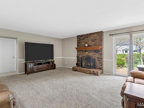 Rockwood ranch in the popular Clarkson Woods subdivision w/level fenced yard & patio. Finished lower level w/full bath, bar, sleeping area & large storage area. Newer kitchen kitchen w/tile flooring, custom cabinets, tile backsplash, gas stove/range & built-in microwave. Breakfast rm w/bay window & serving bar. Family rm w/brick, wood burning fireplace. Formal living rm or home office. Separate dining room w/chandelier. Main floor laundry & utility rm w/sink & door to backyard. Primary bedroom suite has private full bath & deep walk-in closet. Some wood flooring. High-efficiency HVAC. Entry foyer & covered front porch. Landscaped yard w/mature trees. Outstanding Kehrs Mill, Crestview & Marquette. Subdivision pond & social events. Conveniently located just south of HWY 64/40. Showings start 4/22.
