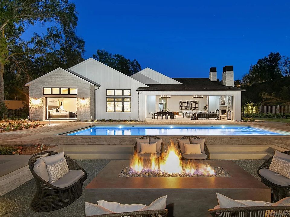 Welcome to an Inspired Lifestyle within the private, gated enclave of Horseman’s Valley on the West side of Rancho Santa Fe. This brand new, single story modern farmhouse is just moments from the beach yet tucked away in the hills of Rancho Santa Fe. The custom home is 5,554 square feet and offers four ensuite bedrooms and an office in the main house as well as a one bedroom detached guest house with a living room and kitchen. As you enter the main home through the dramatic custom pivoting door, you will be in awe of the entertainers dining room with a custom glass encased, temperature-controlled wine room! Meander into the great room with 24 foot vaulted, beamed ceilings, a floor to ceiling stone fireplace and 20-foot-wide pocketing doors opening to the outdoor living room. The private and expansive yard is complete with a full outdoor kitchen, pool/spa, firepit with ample seating and has plenty of room for a grassy play area, raised garden beds, pickle ball court or whatever your family desires! With exquisite custom finishes throughout, there is no detailed overlooked, this home is a stunner!