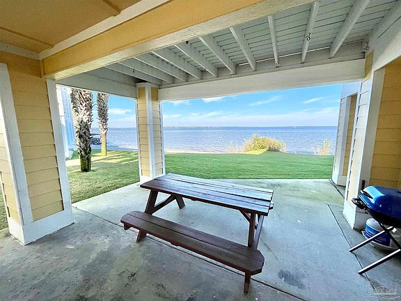This RARE gem is now available in Innerarity Townhomes! A 3 bedroom end unit, RIGHT on the water, furnished and rent/move in ready! Soak in the AMAZING views from one of your two balconies. Enjoy a one of a kind experience of a secluded beach and water access mere feet away from your back patio. Kids and adults alike can play safely in the bay waters, or launch your kayak in a matter of seconds and explore all that Perdido Bay has to offer! This fully furnished home includes 3 bedrooms and 2.5 bathrooms across 1,592 interior sqft. It also has 900 sqft of covered outdoor area, great for hosting and enjoying Florida weather. From the ground floor entrance, you will head to the second level and find an open concept living, kitchen, and dining, all of which look out on to and beyond the first private deck. From here, you will watch dolphins, boats, and sunsets for years to come! The first bedroom and half bath are also conveniently on the main floor. Upstairs, on the third level, are the 2 suites. The Master Suite offers a stone topped double vanity, walk in closet, and another private balcony overlooking Perdido Bay. Down the hall is the laundry room and the Guest Suite, with its own attached bathroom and water views. Innerarity Townhomes is a gated community at the base of Innerarity Island, right on Perdido Bay, that offers a diverse community of primary residents, secondary homes, and vacation rentals. This unit is currently set up as a vacation rental with a property manager. Rental figures and an Airbnb link can be provided. Regardless if you live or vacation here, rest easy knowing that the HOA takes care of all of the lawncare, pool care, and much more for you! You will have access to the community pool, gym, and both onsite private beaches. Once here, you are not going to want to leave! But when you do venture out, Perdido Key, Johnson's Beach, state parks, delicious restaurants, NAS, and more are all just minutes away.