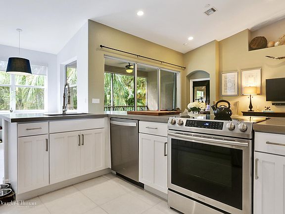 2nd Floor 3BR;2BA coach home located in gated community of Addison Trace. Home features volume ceilings, tile and bamboo engineered hardwood flooring reflecting a modern design & style throughout. Enjoy spacious, open concept living with fully renovated kitchen including center island, quartz countertops, new appliances, formal dining area, eat-in kitchen and great room. Screen enclosed patio has W exposure overlooking garden & palm tree views. Master suite enjoys 2 walk-in closets, fully renovated bath with double vanity, frameless shower & over-sized tub for spa-like ambiance. 2nd Bath features upgraded vanity. Home Security system, smart home controls for A/C, LED lighting throughout and Central Vac. A/C '09; Wtr Htr '16. Pet friendly. A-Rated Schools. Shows like a model.