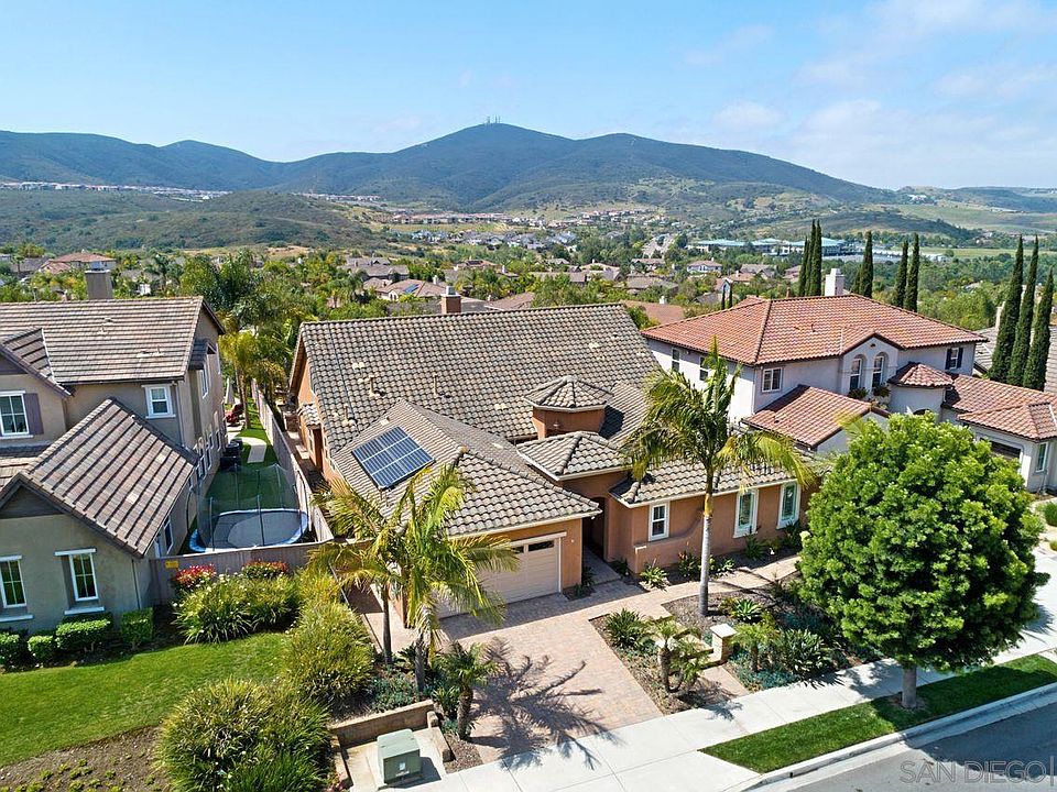 Located in the Southeast corner of 4S Ranch, this home features single story living with a bonus bed/bath and loft upstairs that are perfect for an older teen or live-in nanny. 3 full beds downstairs with an office and a library that can be converted to a 5th bedroom make this a great house for an Executive and the family. The kitchen features a large center dine-at island and looks over the family room with vaulted ceiling and the backyard with a pool, built-in BBQ, outdoor fireplace and sunset views to Black Mountain.
