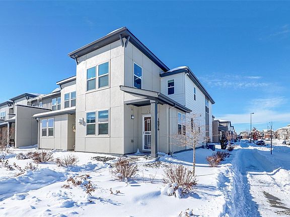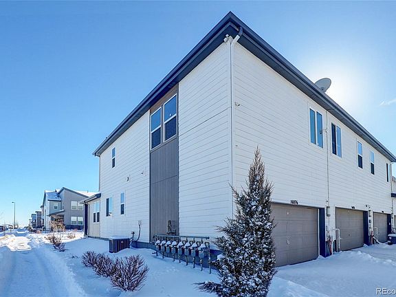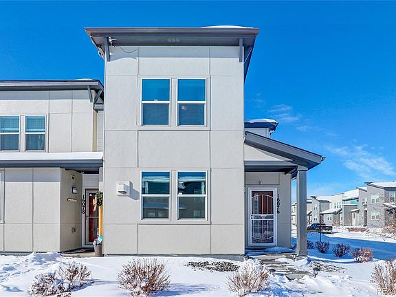 Desirable end unit, two story townhome, 1643 total sq. ft. Built in 2017. One of the larger models in complex. This fabulous 3 bedrooms, 3 bathroom, 2 car attached garage is move in ready. Main level walks into open floor plan with living room and kitchen combo with new custom fireplace in living room, tiled wall and stainless mantel, this was not a builder option and is a custom upgrade. There is new 100% top grade waterproof flooring through main level, stairs, and upper level hallway. Kitchen has newer art inspired epoxy countertops, upgraded sink and disposal, metal mosaic tile flowing up to the ceiling, trendy lighting fixture and color changing lighting above cabinets. Appliances included and come with 14 mo. Blue ribbon home warranty. In hall is large pantry and coat closet and 1/2 bath by garage entry. Next follow the motion lighted stairway, with custom steps and trendy cable stair case to the upper level where you will find linen closet and laundry at top, to the right is the large primary bedroom with en-suite, large shower with bench seat, rain shower and walk-in closet. The secondary bedrooms both have walk-in closets and share a full bath in the hallway. Carpet is is great condition, the home is 5 years new since completion but look brand new. The 2 car garage is drywalled, and has coated flooring, extra storage cabinets, suspended storage racks and garage door opener. Additional upgrades include; additional insulation in attic, garage, and crawl space keeping energy in. There's a whole house fan located in laundry room, perfect for summer. There are security cameras that will but buyer to connect to service if want to use. Convenient to park tables, for summer entertaining, there is clubhouse, pool, parks nearby. The location has easy access to highway I-225, I-70 and E-470 for easy commutes North or South and short drive to DIA for traveling or Catch the nearby light rail for commuting. Several shops and dining nearby.