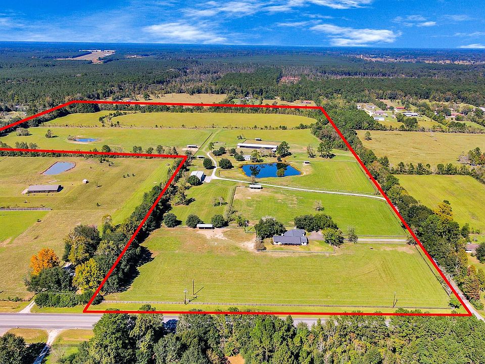 Beautiful multi-residence ranch estate featuring a 3BR/2BA main home with attached 1BR apartment, plus a 2BR/1BA lake house overlooking a serene pond. Ideal for equestrian use, the property includes 12 stalls, two wash racks with hot/cold water, a central vet rack, multiple paddocks, round pens, and a pole barn. Spacious pastures, mature trees, and wide-open views create the perfect setting for a working ranch, multi-generational living, or potential event/wedding venue. Flexible layout, negotiable appliances, and a blend of comfort and functionality make this property a rare turnkey opportunity.