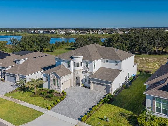 Impressive two-story residence located in Avalon Ridge, Winter Garden. Built in 2024, this home features 6 bedrooms, 5 full baths and 2 half baths, with a floor plan that perfectly balances elegance and functionality. Custom high-end carpentry is present throughout, including built-in cabinets, walk-in closets, vanities, and a kitchen designed to stand out. All original floors were replaced with premium materials, and every closet was redesigned to maximize space and organization. There are two electrical spots to car charge included. The living areas are open and inviting, seamlessly connecting to the gourmet kitchen, creating an ideal setting for everyday living and entertaining. The primary suite on the first floor offers a spacious walk-in closet and a spa-style bathroom with dual sinks. Upstairs, the additional bedrooms include a Jack & Jill bathroom and flexible spaces to fit different lifestyles. A private movie room and laundry rooms on both levels bring comfort and convenience. Large sliding doors lead to the outdoor area with a pool and stunning sunset views.