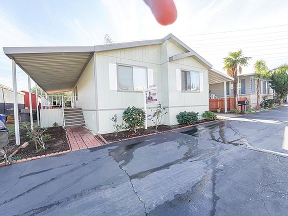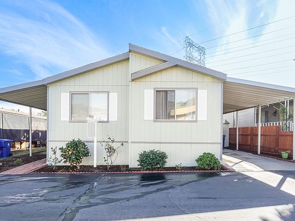 Located in Sylmar! This is a Charming mobile home with 3 bedrooms and 2 bathrooms. The home has a front private porch where you can add seating. Inside find laminate flooring, vaulted ceilings and lots of storage space. The living room has a fireplace and a ceiling fan/light fixture. There is a cozy dining area and a bright kitchen equipped with stainless steel appliances, granite countertops and plenty of cabinet space. Bedrooms have carpet flooring and deep closets. There is a primary bedroom that has an en-suite bathroom. Located near the 5 and 210-freeways, dining options and hiking trails. Some wonderful amenities include a community pool and space.
