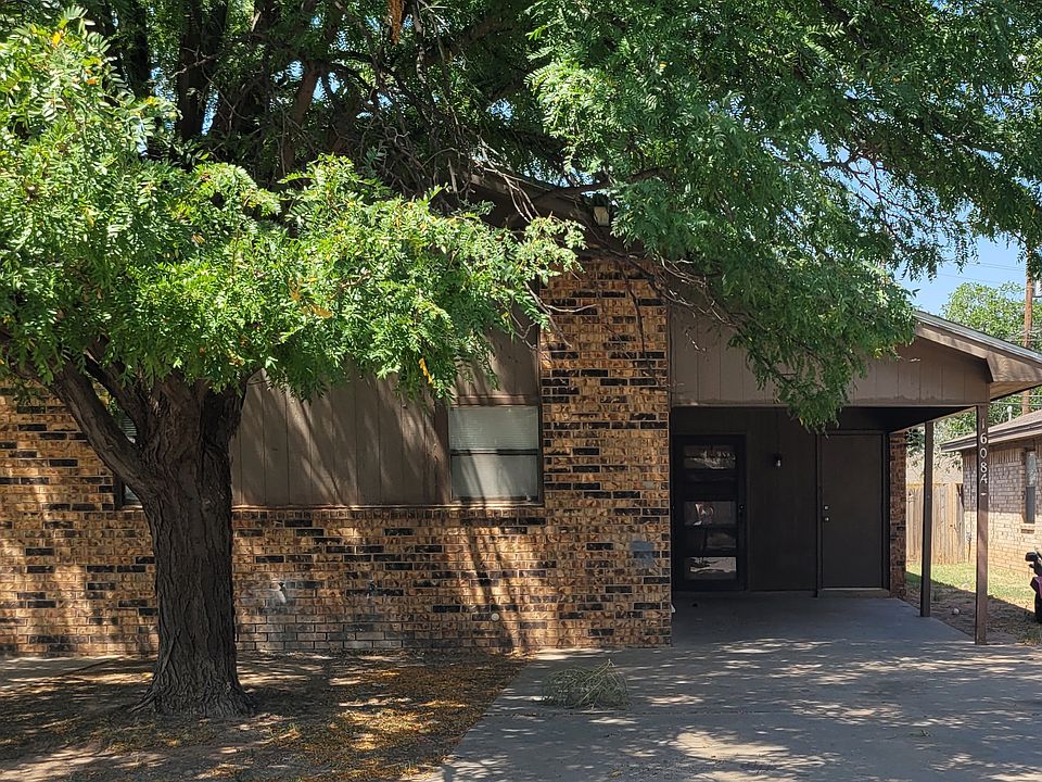 Two bed two bath duplex available near 28th and Ave Q. Slaton, Bean, Monterey schools. The backyard is spacious with a shed and the front offers a carport that shields the front door.