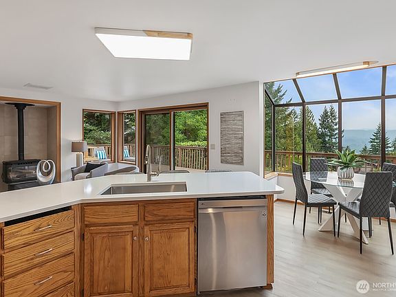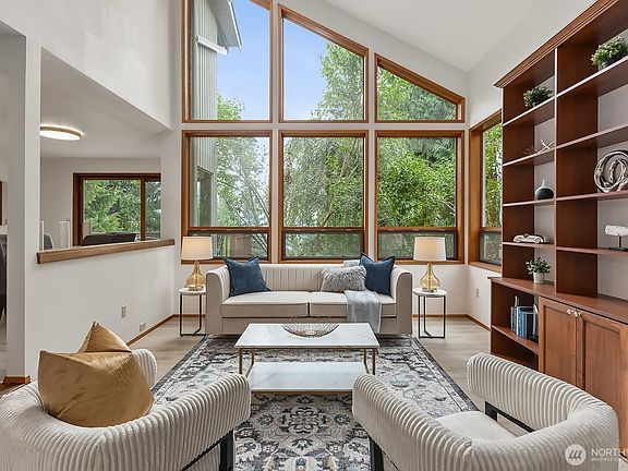 Sweeping mountain and valley views that inspire year-round. A delightful retreat in the View Park Estates neighborhood, this NW contemporary home sits on a quiet cul-de-sac, welcoming you w vaulted ceilings, spacious living & dining areas, newer flooring & refinished hardwoods. Kitchen features quartz counters. Enjoy comfort w a newer furnace & heat pump/AC & 50 yr lifespan roof. The primary suite offers breathtaking views & a private balcony. Expansive lawns invite play, gardening, and peaceful reflection. Though it feels worlds away, you're minutes from shops, dining, parks, & a quick commute to Redmond & Eastside hubs. Pre-inspected. This home is a rare blend of tranquility & convenience. NOW OFFERING $25k CREDIT or 2-1 BUYDOWN.
