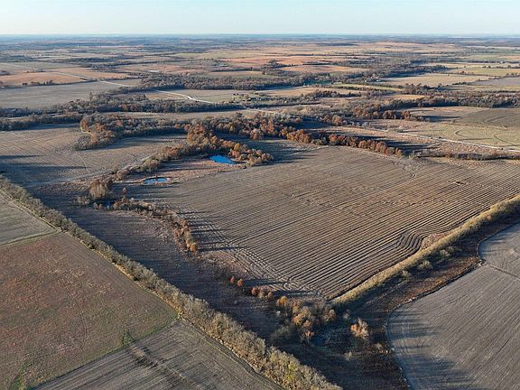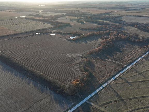 This 237± acre property is located just south of Yates Center in Woodson County, Kansas, offering a rare combination of productive farmland, diverse wildlife habitat, and exceptional recreational opportunities. The property includes 117± cropland acres currently in production, made up primarily of highly productive Class II and III Woodson and Kenoma silt loam soils. The cropland is well-maintained with terraces, waterways, and clean field edges, and is under a year-to-year oral cash rent lease, providing immediate income potential. The remaining 110± acres feature warm-season native grass meadows and mature hardwood timber along a live creek. The native grass is clean and includes little bluestem, big bluestem, and Indian grass. The timber primarily consists of red oak, sycamore, hedge, and eastern red cedar, offering excellent cover for wildlife. South Owl Creek winds throughout the property, supplying year-round water and serving as a natural travel corridor, while multiple ponds and seasonal creeks provide additional water sources. This diverse mix of habitat, food, and water supports some of the best hunting in Kansas, with abundant whitetail deer, turkey, quail, and waterfowl. Located in Kansas Deer Management Unit 11, the property has excellent deer numbers and offers opportunities for both recreational and trophy hunting. The property is accessible via a well-maintained year-round gravel roads and has electricity, rural water, and telephone line at the road, making it ideal for a future home or cabin. Mineral rights are intact and will transfer to the buyer at closing. With tillable income, native grass, mature timber, live water, and premier hunting, this property truly has something for everyone.