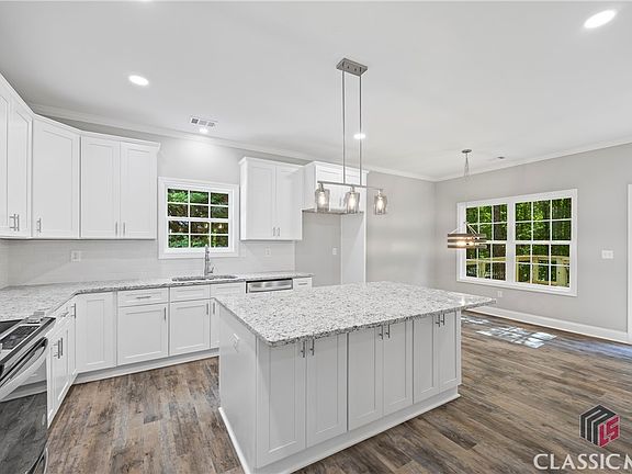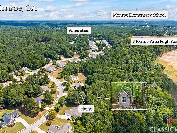 Come tour this beautiful home that's convenient to restaurants and shopping by both the Publix shopping center and downtown Monroe! Welcome home to this beautiful 3 bedroom and 2 bath, new construction. Step into the foyer and be welcomed by an oversized family room featuring soaring 12-foot ceilings, along with a separate dining room. As you make your way into the eat-in Kitchen, you will find an abundance of custom cabinetry, a tiled backsplash, granite countertops, stainless steel appliances, and a 6-foot island that offers extra storage and seating space. Adjacent to the kitchen is a flex room, ideal for creating a home office, playroom, craft room, or any space that best suits your needs. All bedrooms are situated on the main floor, including two large secondary bedrooms, each featuring walk-in closets. The spacious owner's suite boasts tray ceilings, a double vanity with premium granite countertops, a large tiled shower with a glass enclosure, and a massive walk-in closet. The upstairs offers a versatile bonus room, while the basement offers an additional 2,300 +/- square feet, perfect for your storage needs or to customize extra living space. The secluded back yard includes a spacious deck off the kitchen, along with a patio just off the basement, excellent for entertaining. A 10x16 matching structure with covered porch is ideal for a workshop or she-shed! Mature trees along with a new landscaping package, included sodded front yard, makes this house have great curb appeal. (*photos with furniture are virtually staged images to show the rooms potential)
