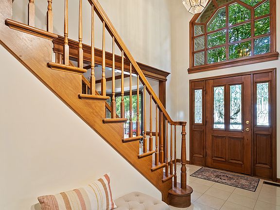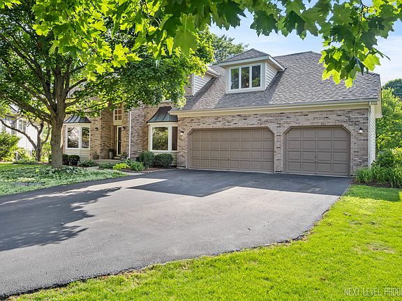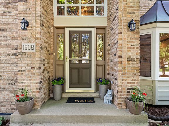 EAGLE BROOK BEAUTY. Sitting on a peaceful cul-de-sac on one of the most spectacular lots in the entire subdivision, this 4 bed + Den, 3 full bath, 3 car home is perched perfectly with enviable views of the 13th green. Unbelievable western sunsets are on tap nightly. This solidly built home has had only one owner and has been meticulously maintained. Gorgeous views from every window, make for the perfect backdrop to every room in the home. There is over 3000 sq feet in this Keim Built Canterbury Model. The main floor boasts a white kitchen with new tile backsplash and stainless steel appliances, there is a two-story family room with a soaring fireplace, good sized living room and dining room and an office overlooking the backyard. There is also a full bathroom with a shower and a laundry room with outside access on the main level. The second floor has a spacious primary suite with hardwood floors, dual-closets, and double sinks along with a soaker tub and shower. There is new carpet throughout the rest of the bedrooms. Hardwood flooring carries throughout the hallway upstairs as well. Each Room has WIC's. Custom moulding and trim work run throughout the entire property. Updates on this home include: Newly painted interior, updated lighting, Roof 2019 (plus one new skylight), Washer/Dryer - 2021, New shower surround 2023, furnace 2019, drywalled and newly painted garage, exterior cedar stained 2023, new carpet upstairs and updated exterior lighting. Skies the limit with the unfinished lookout basement - there is a TON of space to finish off if buyer desires. This property is close to downtown Geneva where you will find an eclectic array of restaurants, adorable shoppes and the metra train. You are centrally located to all of the schools and close to walking and bike paths. Randall Road, which boasts all your major shopping centers, is only 5 minutes away. Geneva is a town that caters to all their residents with award winning schools, vibrant park district and yearlong activities and festivals. There is never a lack for things to do - Come tour and fall in love with 1608 Bunker Court in Geneva. Make it your new home today!