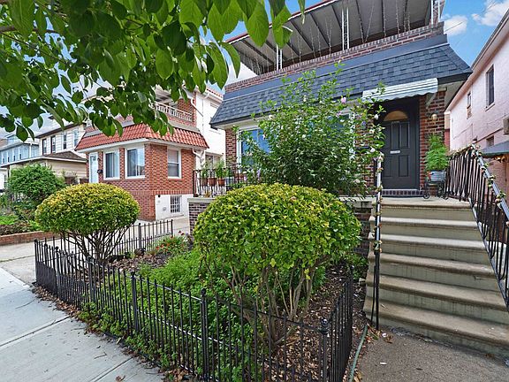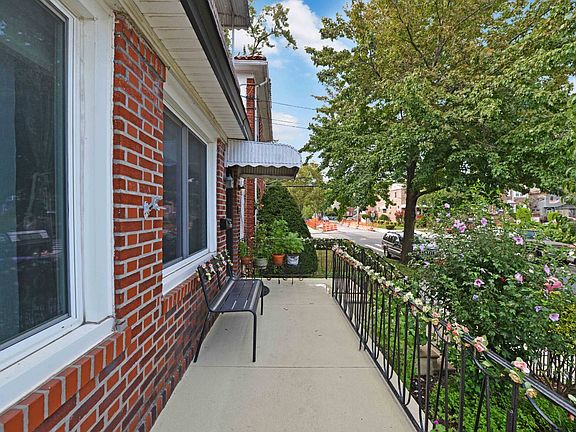 This is an exclusive listing of AmeriHomes Realty 718.447.2626. This 20 ft. wide and fully detached brick two-family with relaxing veranda located in the coveted Marine Park area. Currently configured as a large three-bedroom, two-bathroom "owners duplex" with a one-bedroom income-producing apartment, this charming colonial, greets you with a front porch and delights with bright and spacious rooms, and lovely details throughout. The first-floor plan includes an entry foyer, an oversized living room, a formal dining room, and an eat-in kitchen, allowing the family to spread out, relax, and play in style. The second floor features three large bedrooms separated by a joint landing at the top of the stairs. The second unit is a cozy, convenient one-bedroom apartment that is perfect for additional income or a family member who wants extra privacy. A shared driveway can accommodate multiple cars. This house has the bells and whistles just waiting for your imagination to bring it back to its full splendor.