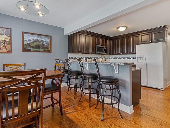 Welcome to this fabulous Cypress Court townhome in the highly sought after Poplar Creek subdivision. The living room boasts a cozy brick fireplace, hardwood flooring and views overlooking the golf course offering the perfect place to relax as well as entertain guests. Enjoy the updated kitchen with beautiful dark cabinetry, granite countertops and hardwood flooring. Breakfast bar and dining area provide lots of room for family and friends. There's newer carpeting throughout the second level. The large master bedroom features a sitting area and a walk-in closet as well as bright master bath with 2 linen closets. The laundry area is conveniently located on second floor. The roomy second bedroom has a full bath with a shower. A finished basement with dry bar, family room, exercise room, office nook and plenty of storage adds additional flexible space. Rheem 50 gallon hot water heater is 2-3 years old.