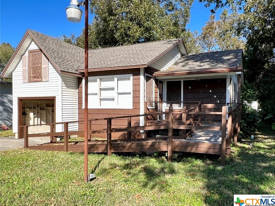 Very affordable 3 bedroom 1 bath home with 2 living areas, central AC & heat, newer roof & wood deck.