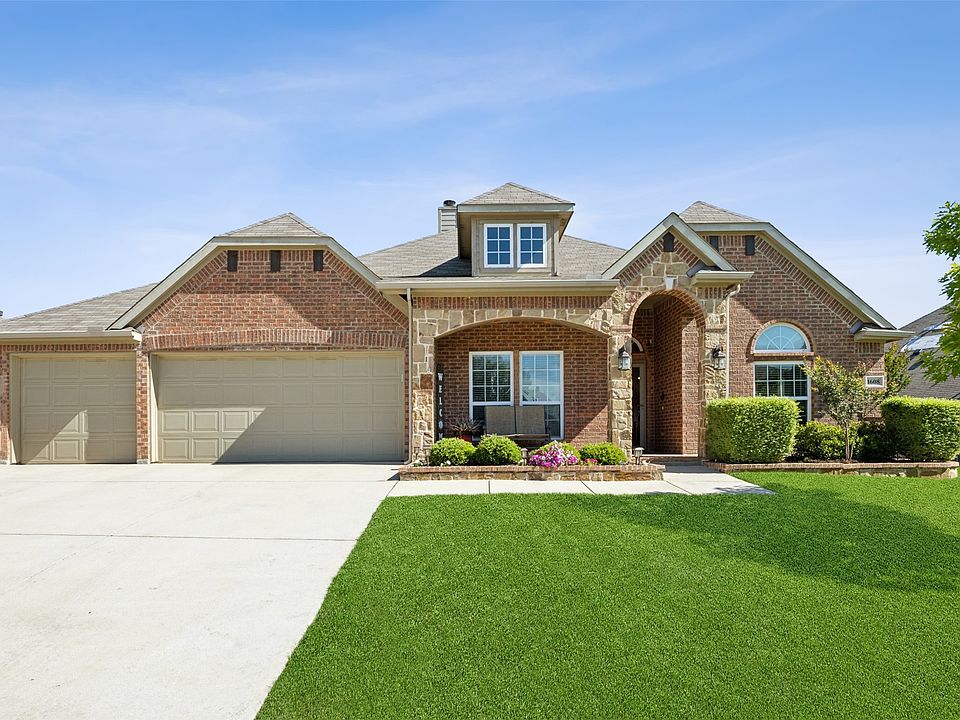 Curb appeal abounds with this beautifully maintained 3-bedroom, 2-bath Haslet home—ready for you to make your own! From the moment you enter, you'll feel the warmth and care poured into every detail. The inviting living room features a stately gas fireplace insert and a wall of large windows, creating a cozy and bright space at the heart of the home. The eat-in kitchen boasts a new quartz countertop and backsplash, island with bar seating, built-in appliances, and a sunny breakfast nook. Hosting is easy in the formal dining room, ideal for gatherings and holidays. The spacious primary suite is a true retreat with a spa-like bath including dual sinks, separate vanities, a soaking tub, walk-in shower, and generous closet. Secondary bedrooms are equally roomy, and both bathrooms were updated with new faucets, paint, and hardware. The elegant home office is perfect for remote work or study. You will fall in love with the private backyard oasis—featuring a heated pool and spa (2021), new fencing with a privacy wall, covered patio, and built-in gas line for effortless outdoor cooking. Additional upgrades include: 2019 roof replacement (by previous owner), luxury vinyl tile and carpet throughout, complete interior repaint including doors and trim (2020), new blinds throughout, an updated security system, and a new 3-ton HVAC installed in 2023. Located in a quiet neighborhood with great walking areas, spacious rooms, and generous indoor and outdoor entertainment spaces—this home offers comfort, convenience, and timeless style. 3D Tour available online