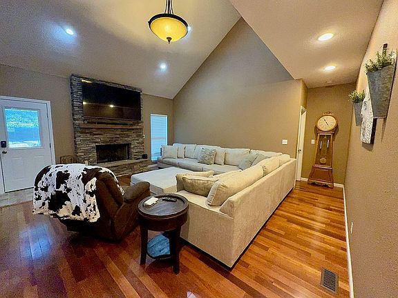 Hardwood floorsRemodeled master bathroomDining roomLarge walk in closetGranite countertopsLarge bathroomAcross from cropland fields