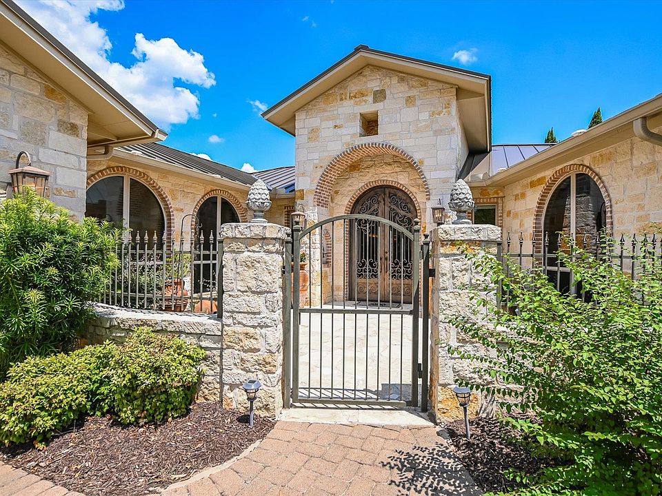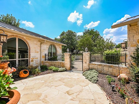 QUALITY. GOLF COURSE. CUSTOM HOME. Built in 2005 by respected Turrentine Prop, this sprawling all-stone 1 story 3401 sqft hm fronts the 6th hole on Ram Rock GC, designed by Robert Trent Jones, Sr. This hm offers incredible golf & Hill Country views - Tuscany in the heart of TX Hill Country! Light-filled 3 bdrm, 3.5 bath boasts massive rms (2 prim suites), solid alder custom cabinetry & baseboards, Pella crank windows & doors, top-tier granite, specialty tiles & stonework throughout, wood floors, & timeless travertine stone floors w- ribbon edges in a Versailles pattern. Extended pavestone driveway w- stone borders & lush landscaping leads to the front courtyard & the dramatic custom iron dbl doors. Upon entering you are greeted w- an exquisite uplit travertine tiled barrel ceiling that encompasses the foyer & leads to the oversized formal dining area complete w- a sep wine rm adorned in rare burnt red onyx, wet bar, ice maker & wine refrig, & access to the pvt side stone patio w- fp. Next is the enormous living rm w- huge beams & gorgeous alder-built ins, stone fp & dbl doors that lead to the outdoor liv area w/ yet another fp, built- in grill, sink & refrig & all overlooking the GC. The prim suite also encompasses a study area w- the fourth & final fp, & another pvt patio overlooking the GC. The prim bathrm is stunning w- ornate stone tile, alder dual vanities, jetted tub, lg walk-in shower & GIANT prim closet leading to the laundry rm. Come see the endless possibilities!