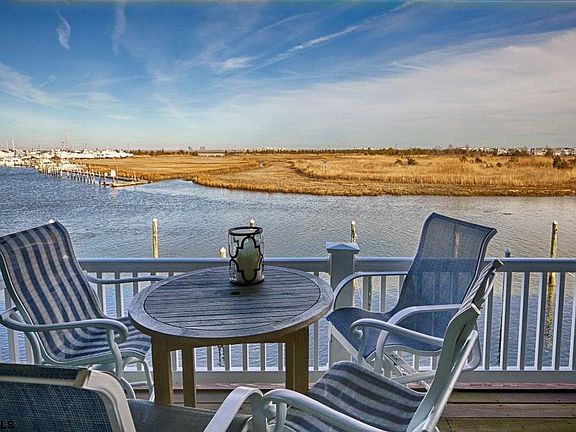 HARBOUR COVE - 3BR, 2 Bath Bayfront beauty, one of only 12 units in Harbour Cove that contains a deep water, 40 ft boat slip, ($276.50 per quarter), spectacular views, laminate & hardwood floors, custom kitchen with granite, great room w/granite fireplace, built-ins, master suite w/fireplace, skylights, walk-in closet, 2 wood decks (upper deck has been treated with fiberglass, providing for use of lower deck in inclement weather, etc), swimming pool, boardwalk, marina. Upscale boating community, just minutes to O.C. & A.C. beaches & boardwalks.