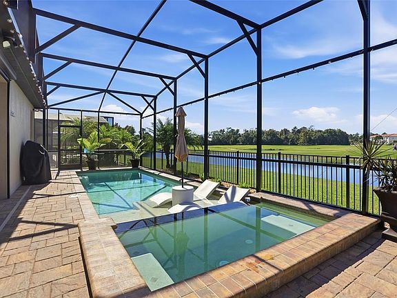 Screened-in pool and spaUpgraded laundry roomOpen-concept floor planNew refrigeratorGourmet kitchenSliding glass doorsPaver driveway
