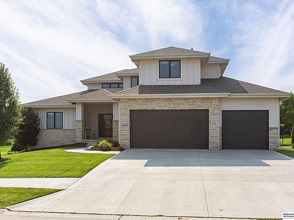 Welcome home to this stunning 1.5 Story home nestled in the highly sought-after Windgate Ranch neighborhood. As you step inside, you'll be greeted by the grand living room with its soaring 2-story ceilings & an impressive wall of windows that flood the space with natural light. The kitchen features beautiful quartz countertops with a tile backsplash, SS appliances and a huge hidden walk in pantry. The main floor features a luxurious master suite, complete with a large walk-in closet & convenient access to the main floor laundry. Step outside to discover an inviting covered patio and a fully fenced yard, perfect for outdoor relaxation and entertaining. The lower level is unfinished- just waiting for your personal touch. Walking distance to Elkhorn Valley View middle school & Elkhorn South High School. This beautiful home is not just a place to live but a lifestyle to be enjoyed. Don't miss the opportunity to make it yours! Agents have equity