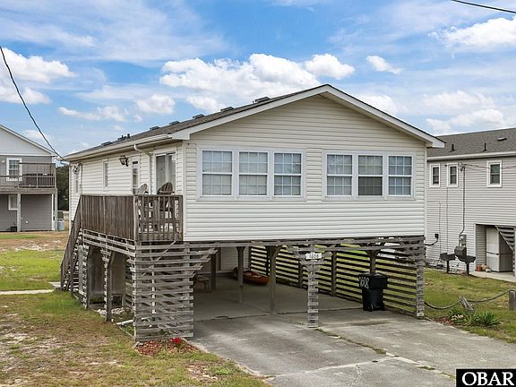 Classic beach box just 3 lots from the beach. Best priced home between the highways in Kill Devil Hills! This laid back beach retreat boasts three bedrooms, one of which has it's own ensuite bath, a nice oceanside sunroom that provides additional sitting area, and a large carport and ground level storage room for all your beach equipment. Being on municipal sewer is rare and leaves you with plenty of room to put add a pool in the large back yard. Roof is approx 10 yrs old and HVAC was replaced in 2019. Easy walk to nearby beach access and close to several restuarants and shops. Rental Projection on file for $50,000 in annual rental income as a short term rental property!