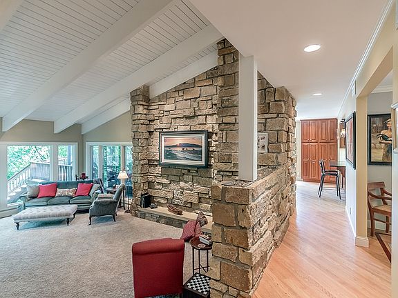 Tucked away on a secluded 1.27 acre ravine lot is this desirable multi-level Kasota stone property. You will appreciate the meticulously placed paver stone circle driveway and well-manicured landscaping. Upon entering this sprawling layout, you will be pleased with the abundance of natural lighting from every window overlooking the ravine. The sunken great room highlights an overwhelming Kasota stone wall with gas fireplace, large built-in bookshelf and exposed ceiling beams. The den boasts a 2nd gas fireplace surrounded by stone and built-in desk and cabinets and a bow window with seating. French doors take you out to the 18x13 screened-in porch that is vaulted and leads you outdoors to the enormous deck. The kitchen is open to the den with a conventional breakfast bar and features a gas cooktop, double oven and skylight. Finishing off the main floor is a formal dining room, bedroom, and half bath. The lower level includes three bedrooms, full bath, laundry room, large storage room and a sunken family room with a 3rd unique stone gas fireplace and more built-ins! French doors leading to a paver patio overlook the woodsy retreat. The upper level is reserved entirely for the master suite. A bow window provides more great views of the ravine. Private bath and separate shower, 11x11 walk in closet with custom shelving plus another walk in closet make this room complete. You will savor in the peace and solitude from every space of this property inside and out.