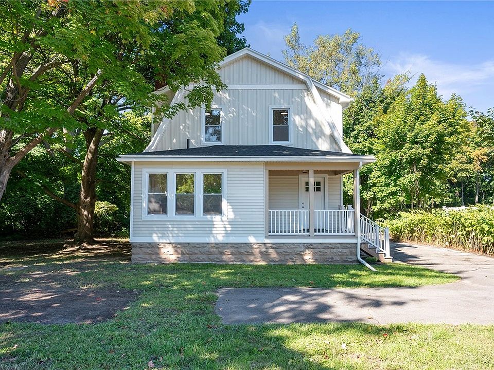 Check out this BRAND NEW FULLY REHABBED 3 bed, 1.5 bath home on over a HALF ACRE LOT! Stunning brand new kitchen, granite counters and stainless steel appliances. Wide open floor plan, wood burning fireplace and front covered porch! Luxury vinyl plank throughout the first floor and new carpet on second. Master bath has a full tiled shower, lighting, vanity and mirror! Brand new roof, siding, windows, doors, High efficiency furnace/AC, water tank, 200 amp electric, plumbing, recessed lighting and more! SPENCERPORT SCHOOLS!!