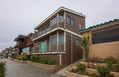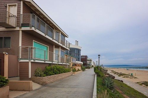 Unfurnished, Front, House, Will consider pet, 2 bedrooms, 2 1/2 Bath, One year minimum lease, Hardwood and Tile Floors, 2-car Garage parking, quiet neighborhood , refrigerator, stove, microwave, dishwasher, balcony, patio, central heat, fireplace, washer and dryer hookups, washer and dryer in unit, Stunning 2 bdrm + office/den + loft + 2 1/2 bath beach house on The Strand, directly facing the beach, with unobstructed, panoramic ocean views. 2 freestanding houses on the property, owner lives in the rear house. Upper and lower balconies to enjoy sunsets, sunrises, and calming, cool ocean breezes. Oversize master suite with private balcony, lots of closet storage and frameless glass shower in the en suite bathroom. Wood burning fireplace in the living room. Home includes a den/office/sunroom, plus a loft space off the master bedroom. 2 car garage. Non-smoking property., Paid water & trash, approx 1800 sqft $7,500.00, 8500.00 deposit,