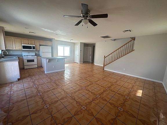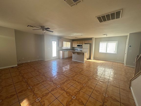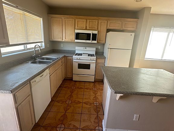 Fantastic 4 bed/2.5 bath two story home in the East! 1,752 sq. ft. Two car attached garage. Large open floorplan downstairs with tile floors. Kitchen has an island with a breakfast bar! Dining area next to the kitchen. All bedrooms are upstairs. Master bedroom has vaulted ceilings, built-in cabinets, and a walk-in closet! Master bathroom has double sinks! Has a backyard area!