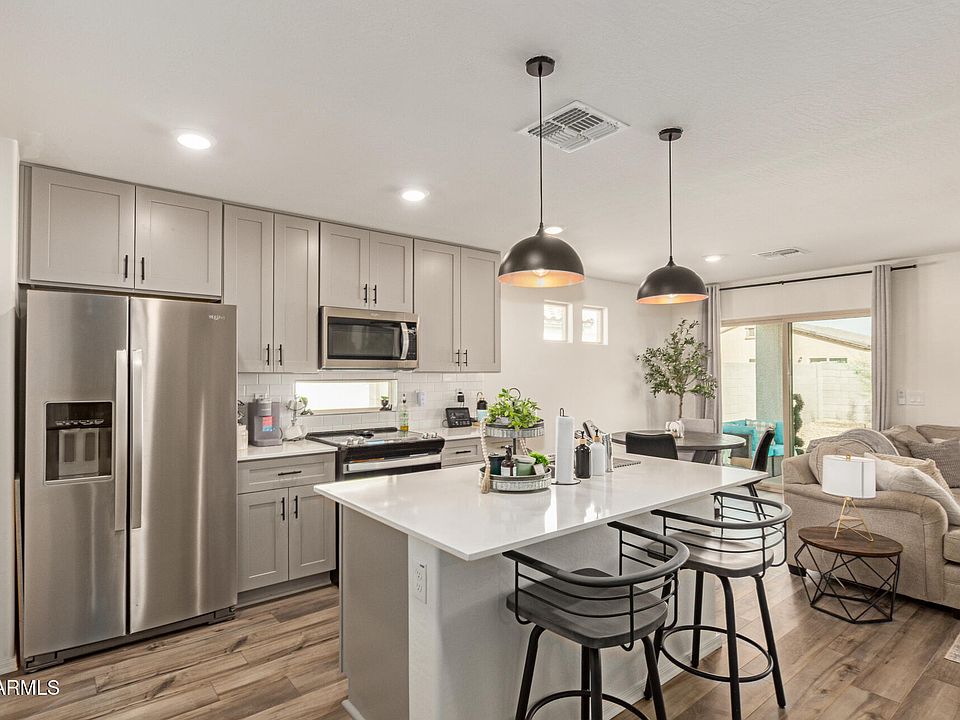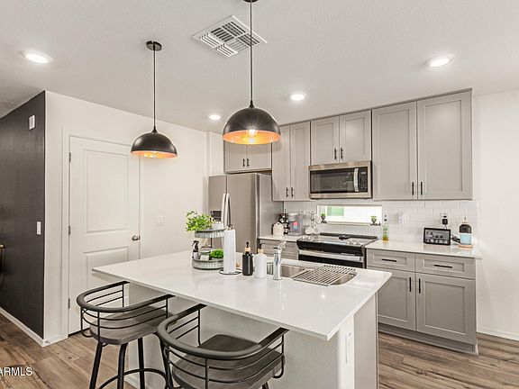 Covered patioLow-care landscapeAbundant natural lightArtificial turfSubway tile backsplashSs appliancesShaker cabinetry