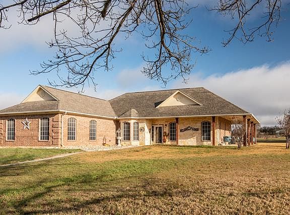 SELLER WILL TAKE A BACK UP CONTRACT! STILL AVAILABLE TO SHOW! Sprawling & serene 5.6 acre Mustang Creek home with wraparound porch and plenty of space to relax! Main home with large open plan, cozy fireplace, crown molding and so much more. Kitchen boasts granite, SS, undercabinet lighting, built in appliances & large pantry. Primary suite has double vanity, jetted tub, separate shower & large walk in closet. Attached handicap accessible MIL suite with fireplace, full kitchen, full size appliances, dining space, spacious bathroom & utility room. You'll love the 40X50 shop with RV access and plenty of 220 outlets. Additional storage shed next to shop. Perfect home overlooking your own piece of Texas countryside!
