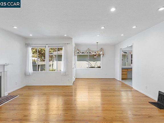 COME SEE this San Lorenzo Village Gem! Featuring 3 bedrooms, 2 bathrooms, and 1,300 square feet of modern comfort on a beautiful corner lot. Its open floor plan floods the space with natural light, creating a bright and inviting atmosphere. The primary bedroom boasts a large closet and is steps away from its own private bathroom for ultimate convenience. A spacious room, originally two bedrooms combined, can be effortlessly converted back into two separate bedrooms for added flexibility. Featuring solar panels and a tankless water heater for energy efficiency, this residence showcases updated bathrooms and a gourmet kitchen with sleek granite countertops, stainless steel appliances, and a spacious pantry for ample storage. Newly polished hardwood floors shine throughout, complemented by freshly painted interiors, newly installed recessed lighting, and dual-pane windows. Cozy up to the modern gas fireplace, perfect for relaxing evenings. A convenient laundry room adds practicality, while the prime location places you steps away from top-rated schools, shopping, the post office, and public transportation. This move-in-ready gem combines style, functionality, and an unbeatable location! Close to Schools, Shopping and public transportation!