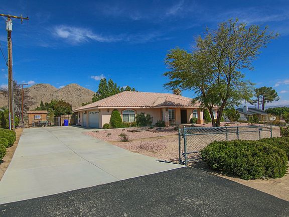 Shows like a model! Beautiful 3 bedroom, 2.5 bath home on .8 acre in highly desired Desert Knolls. Features include: energy efficient solar panels, drought tolerant front yard with park like setting in the back, custom storage shed, fountain, and large spa, property completely fenced with chain link and privacy wood, R.V. storage, 3 screen security doors, custom window treatments throughout, hardwoods and tile in main living area and master bath, close to schools and shopping with easy access to interstate.