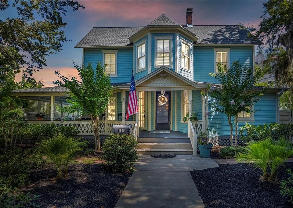 PRICED TO SELL! NO HISTORICAL RESTRICTIONS! Welcome to 1609 1st Ave W, Bradenton, FL 34205 – a stunning 1898 Queen Anne Victorian home in the heart of the historic district of Bradenton, Florida – Pt. Pleasant riverside downtown. Walking distance to all the downtown activity and close to the river, this two-story home is 2,541 square feet and has 4 bedrooms, 2 bathrooms, and a flex room. It also features formal dining, sitting, and living rooms as well as a dine-in kitchen. You will find high ceilings and leaded glass windows throughout, as well as original wood floors, trim, wainscotting, and other original wood features. It has a brand new roof, 2 A/C units, updated plumbing and electrical, a 1 car garage, 2 driveways, new fencing and a transferrable termite warranty (new tenting, good for 7-10 years, happening August 1). You’ll be welcomed inside by a show-stopping grand foyer and then can easily access the sitting, dining, and living rooms. All 4 rooms boast original ceiling pendant chandeliers from 1898. Continue through the home to find your dine-in kitchen with solid wood cabinets, and first-floor master bedroom with an attached bathroom that has a custom accessible walk-in bath tub. In the center of the home, take the staircase upstairs and find a large flex room along with 3 bedrooms, a full bath with a gorgeous clawfoot soaking tub, and one of your laundry areas. If you enjoy spending time outside, you’ll love the wide 508 square foot wraparound front/side porch that becomes bonus outdoor living space, especially in October – April! Enjoy the in-ground heated saltwater pool in the secluded backyard on those hot summer days or make smores over in the firepit area on the cooler evenings. A HUGE bonus – this home has a fully furnished and completely updated 552 square foot 1898 carriage house on property that currently serves as a successful and profit-bringing Airbnb averaging $48,000 of income yearly. It is a two-story house – with the 1-room studio upstairs serving as the main living area, equipped with a kitchenette and full bathroom. It also has a private balcony. The downstairs portion of the house features a second laundry area, storage space, and a half bathroom. You will also find a hot/cold outdoor shower, patio dining space, and access to the main house pool and firepit areas. If you would like to have an in-home business, that is allowed and welcome at this property – plenty of space to do whatever you’d like! This home has everything you could ever want or need! Mix and match the formal and informal rooms to suit your needs and build the living space of your dreams! The current owners have lived here for 27 years and have carefully and lovingly taken care of this home to ensure that the rich history and character did not disappear as upgrades and additions were made. A few more things that the current owners have loved about the home over the last 27 years: · Decorating it for Christmas time · Others telling them that “it’s the prettiest house in Bradenton” · Memories of raising their family here · Neighbors walking by and stopping to chat · Using words like “parlor”, “turret” and “carriage house” · How it looks at night with lights shining through the windows · How it smells when they cook breakfast or bake