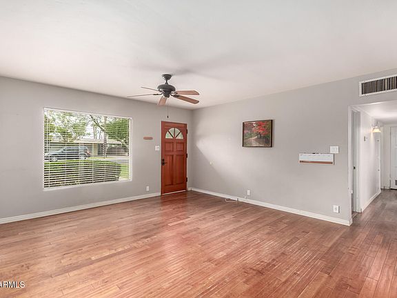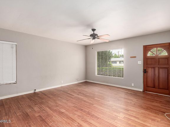Mid-Century Classic - 4 bedroom + den + 2 bath home on a large, irrigated cul-de-sac lot with grass and trees. Beautiful wood laminate flooring and custom concrete floors. Great kitchen with quartz countertops, stainless appliances - gas range, refrigerator, dishwasher, breakfast bar, RO system. Separate dining opens to light and bright living room. Remodeled Baths. Office/Den! Fabulous backyard with covered patio, two 14x10 block workshops, and block fencing. Sewer line replaced in 2018. Citrus trees, fresh and delicious fruit, and an apricot tree. A charming section of desert landscaping in back with a small saguaro cactus and desert loving plants. This home has been beautifully maintained, and the owners loved living here. Walking Distance to ASU and Light Rail! Enjoy walking in Parque de Soza, the neighborhood park. Walking distance to several restaurants. Convenient to Light Rail, ASU, shopping, and Sky Harbor Airport.