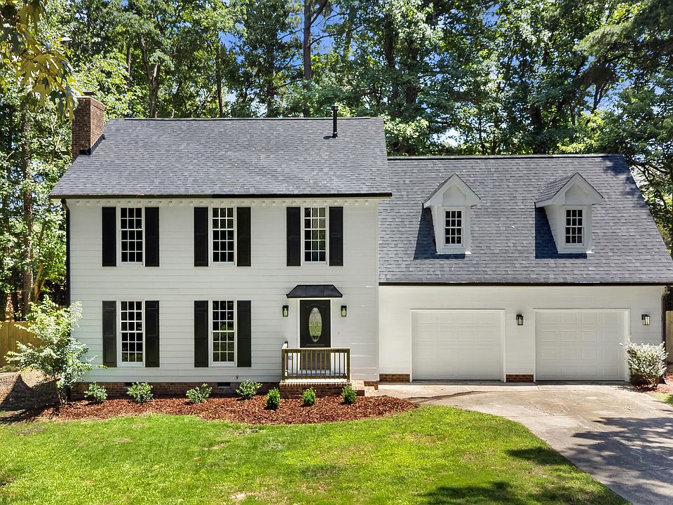 Welcome to your forever home, nestled in the peaceful cul-de-sac of the coveted Raintree community, neighboring the lifestyle and luxury of North Ridge and the vibrancy of North Raleigh living. Expertly redesigned from top to bottom by CQC Home—the Triangle's premier design-build firm and a recent Parade of Homes Gold Winner—this move-in-ready residence perfectly marries classic warmth with modern sophistication and lives like new construction. Step inside to discover a bright, open-concept layout adorned with brand-new luxury plank flooring that flows seamlessly throughout both levels. The main living area exudes character with original built-ins and two wood-burning fireplaces, ideal for cozy nights or elegant entertaining. Designer lighting casts a warm, inviting glow across every room, while the fully updated kitchen steals the show with quartz countertops, new stainless steel appliances, soft-close cabinetry, and a show-stopping center island perfect for gathering with family and friends. Upstairs, escape to a serene owner's suite featuring dual vanities, a private enclosed toilet area, stunning tile finishes, and a spacious walk-in closet. A secondary en-suite bedroom, originally a primary, offers flexible space for in-laws, guests, or multi-generational needs. Freshly refinished decking invites morning coffee or twilight relaxation, framed by partial privacy fencing and a beautifully treed backdrop. Additional updates include a brand-new roof, updated HVAC, insulated crawlspace, new garage doors, and a walk-up unfinished third floor ready to become your future bonus room, office, or creative space. Beyond the surface, this home's comprehensive infrastructure renewal makes it live like a new build, with modernized systems, enhanced efficiency, and meticulous attention to every detail—delivering comfort, confidence, and long-term value rarely found in established neighborhoods. Perfectly located near parks, greenways, swim clubs, boutique shopping, and dining hot spots like Lafayette Village, this home offers both serenity and convenience with swift access to I-540 and WakeMed North. Enjoy proximity to North Hills for upscale shopping and dining, Downtown Raleigh for culture and nightlife, and RDU International Airport for effortless travel. Within minutes of North Ridge Country Club and Ravenscroft School, this property offers the ideal blend of location, lifestyle, and design excellence. An extraordinary rarity in North Raleigh, this home sits in a community with NO HOA, giving you freedom and flexibility without sacrificing prestige or convenience. Whether you're a discerning buyer seeking comfort, function, and lifestyle or a family dreaming of space to grow, this one checks every box.