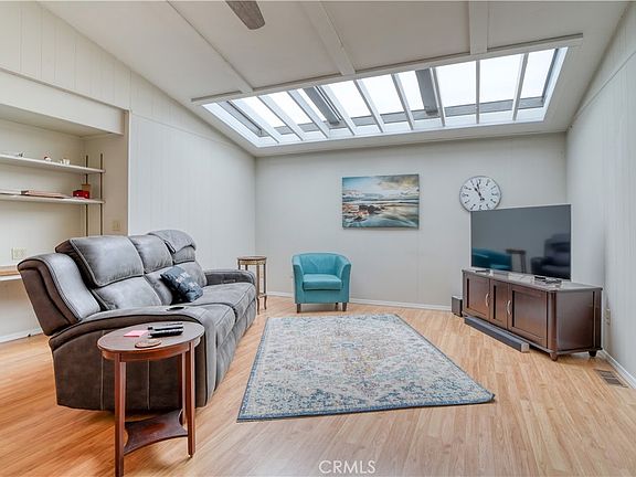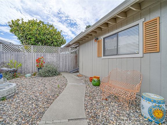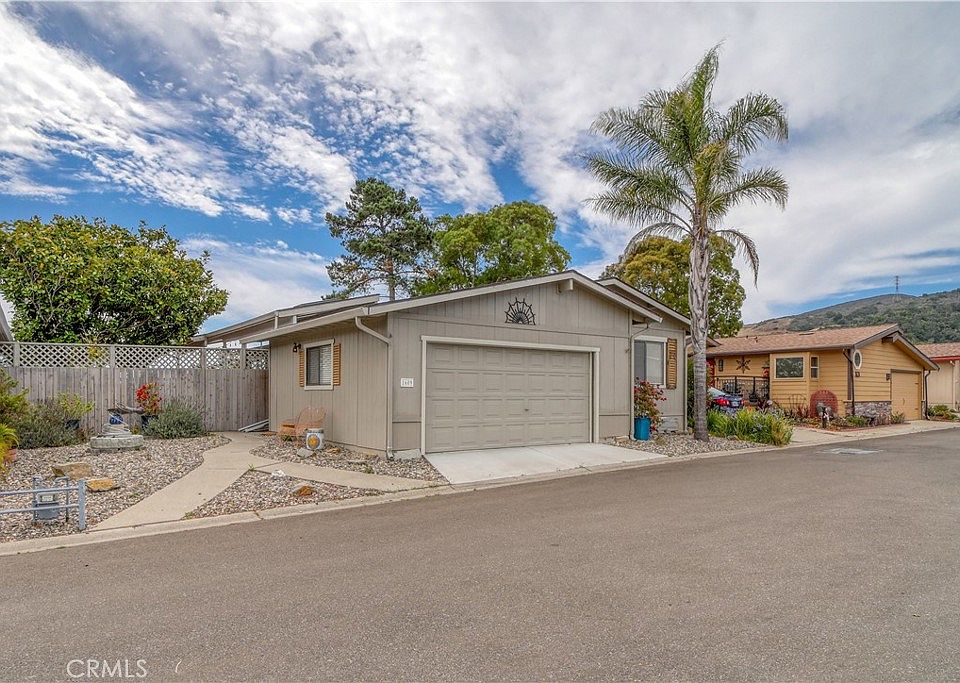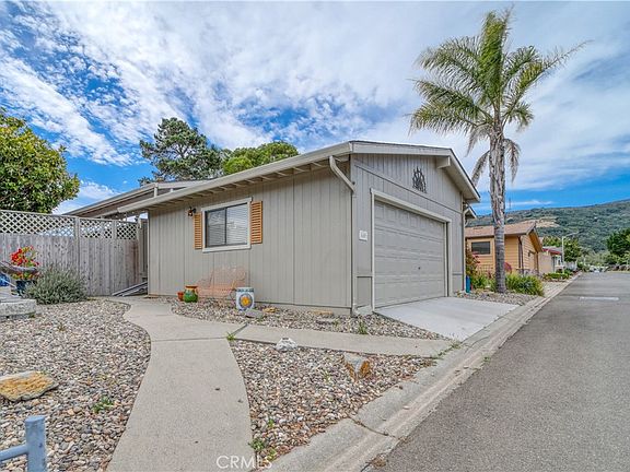 Ideal location backing up to the golf course, overlooking the 9th green. Immaculate 2 bedroom 2 bath with nearly 1300 sqft, a modern open floor plan featuring laminate flooring in the living areas including the well appointed kitchen overlooking the dining area with built-in buffet and sliding glass doors leading to the spacious deck. The living room features a large skylight to bring in the natural light and enough room for an office area. The owner's suite features a walk-in closet, en-suite bath with soaking tub and separate shower enclosure and sliding glass door access to the back patio. On the opposite side of the home is a full bath, guest room and spacious garage with ample room for storage. Indoor laundry with cabinets and collapsible folding shelf. The back deck features built in storage benches and plenty of room to entertain while enjoying the the view of the golf course, plus a nice yard area with shade tree and direct access to the green. The community features a pool, spa club house and workout room. Close to shopping, restaurants, public transportation and just a few minutes to downtown San Luis Obispo.