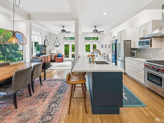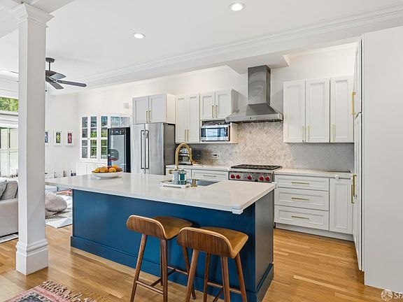 This light-filled, south-facing full-floor flat offers three spacious bedrooms, two beautifully remodeled full bathrooms, and a generous ~325 sq. ft. deeded walkout terrace for seamless indoor-outdoor living. Thoughtfully redesigned with wide-plank flooring, high ceilings, oversized double-pane windows, and two sets of French doors, the home combines loft-like volume with sophisticated detail. The open-concept kitchen features a Wolf range, new appliances, and custom cabinetry. Both bathrooms have been fully renovated with timeless finishes, and all bedrooms include custom closet inserts for optimal storage. System upgrades include a new electrical panel, enhanced security with Ring cameras, and Monkeybrains high-speed satellite internet. Detached on three sides with insulation between floors for quiet enjoyment. Fully condo-converted with in-unit laundry. Located in a well-maintained two-unit building.