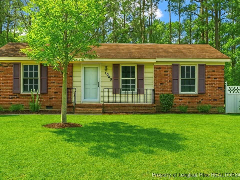 This 3 bed 2 bath well-cared-for home close to Fort Bragg and all your needs offers a bright and spacious living room, a newly updated kitchen featuring brand new stainless steel appliances, and an adjacent dining area perfect for family meals or entertaining! A cozy den with a charming fireplace provides an inviting second space to unwind! Both bathrooms have been recently updated, adding a modern touch throughout. Additional highlights include a convenient laundry room with washer and dryer hookups, and a fully fenced backyard with a beautiful large brick patio—ideal for outdoor living! Longtime tenant has truly loved and cared for this home, making it a wonderful opportunity for the next owner. **NEW Lennox Elite 16, 3 Ton HVAC system installed 7/2/25 **NEW roof installed 8/13/25!