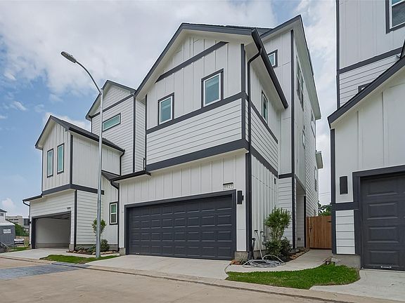 This 3-story residence has 3 bedrooms, 2 Full and One ½ baths, 2 Flex Spaces and an extended 2-car garage. This floorplan is designed for entertaining with it’s true open concept design. Beautifully laid out floorplan, high ceilings, large closets, and an extra wide covered patio overlooking the yard. The entire 2nd floor features a flex space, and a large Primary En-suite. The Primary bath is generously sized for the spa like experience including a free-standing antique style soaking tub overlooked by its large walk-in tile surround shower. The huge dual sided closet conveniently opens to the 2nd floor laundry room! Additional features include exterior gas grill connection, wired for a car charger, ceiling fans in all rooms, 2” blinds, vinyl wood plank throughout. Just minutes to City Centre and Memorial City Convenient guest parking is available in the community, enjoy easy access to I-10, Beltway 8, 610 Loop, & Hwy 290, just 8 miles to the Galleria, 25 minutes to Downtown Houston.