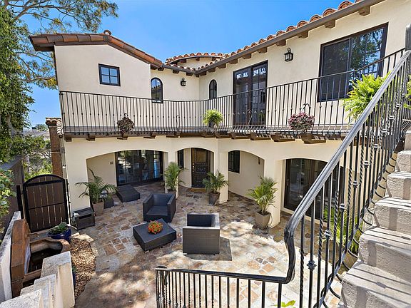 Live the San Clemente lifestyle in this beautifully updated Spanish-style residence, just a short stroll to the beach and a golf cart ride away from Del Mar street. Featuring a private gated courtyard, charming wrought iron details, arched doorways, and rich wood finishes throughout, this home seamlessly blends classic character with modern comforts. Enjoy expansive living and dining areas with beamed ceilings, a cozy fireplace, and abundant natural light from custom windows and French doors. The gourmet kitchen boasts stainless steel appliances, a large center island, and timeless cabinetry. With spacious bedrooms, spa-inspired baths, and serene outdoor spaces, this home is ideal for relaxing or entertaining. Don't miss the opportunity to live close to top restaurants, shops, and surf in one of South Orange County's most desirable beach towns!