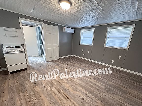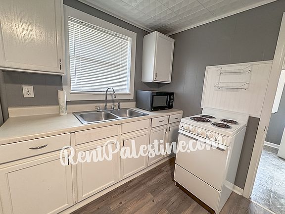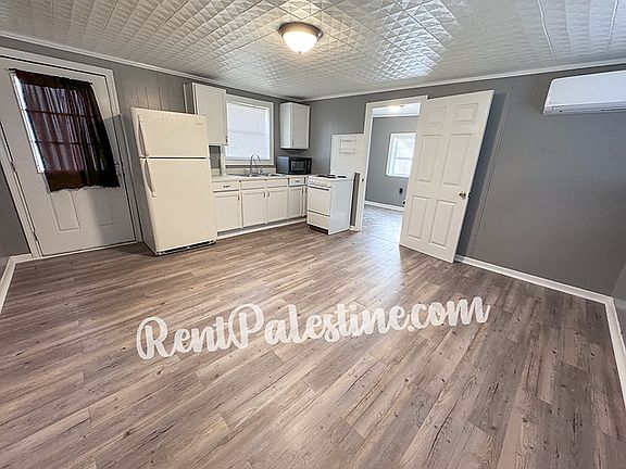 Cute as a bug! 1 Bed 1 Bath House on just under a half acre on Sycamore in Palestine. Updated flooring, fresh paint and new easy-clean shower, new vanity. Mini-split HVAC system. Tenant is responsible for yard & utilities. Refrigerator is provided as a courtesy item only. 4 rooms total--living room/kitchen combo, bedroom, laundry room & bathroom. Picnic table and concrete patio area in the front .