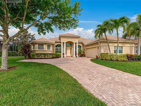 You will love the "wow!" view when you enter this pristine Estate home on its premium lake lot. Great lake & pool views through recently installed impact glass windows & sliding glass doors. 20" Tile on diagonal throughout living areas, 12' volume ceilings w/crown molding, arched 8' & 9' doorways, custom ceiling fans/lights, granite kitchen w/center island & desk, under cabinet lighting & glass tile backsplash, large pantry, laundry room w/cabinets & stainless sink & a triple split plan are just a few highlights. Plenty of room for family and guests with 4 bedrooms, 3 baths, home office, large master suite w/slider to upgraded travertine patio and designer pool in screen enclosure. Home is in immaculate condition, formerly owned by snowbirds and now owned by Mr. and Mrs. HGTV! Home is conveniently located near rear electronic gate on Ault and walking distance to clubhouse. Legacy Cove is highly sought after for its location with great schools & shopping nearby. EZ access to I-95, too!