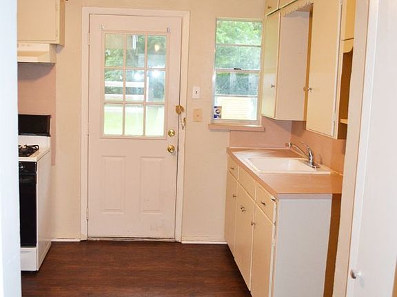 Cute 2 bedroom, 1 bath home for rent in Denton. Wood-like flooring throughout house. Large fenced in backyard. Landlord to approve of pet size and type.